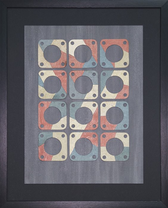 Antonio creates both collage and assemblage pieces through repurposing found objects that fulfil his need to manipulate materials and bring new life to components that are often hidden from sight or deemed useless.