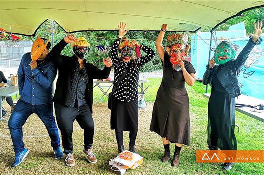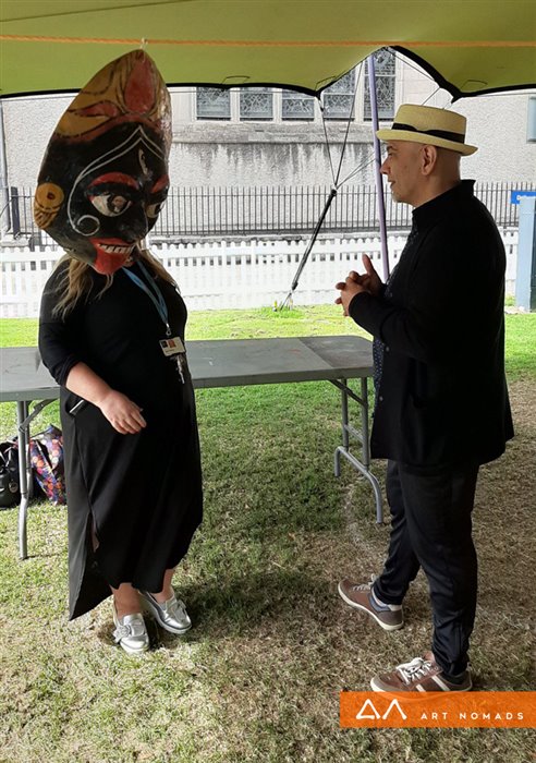 Through a guided discussion and mask design workshop participants explored images of creatures sometimes half human, half animal who populate fairy tales, myths and folk stories that we all know from our own upbringings. Folk stories are like culture itself, they have been shaped and changed innumerable times by the journeys and languages of transcultural exchange. A mask can not only be described as a protective garment but is also a transformative object that gives the wearer a shamanistic potential in the world.